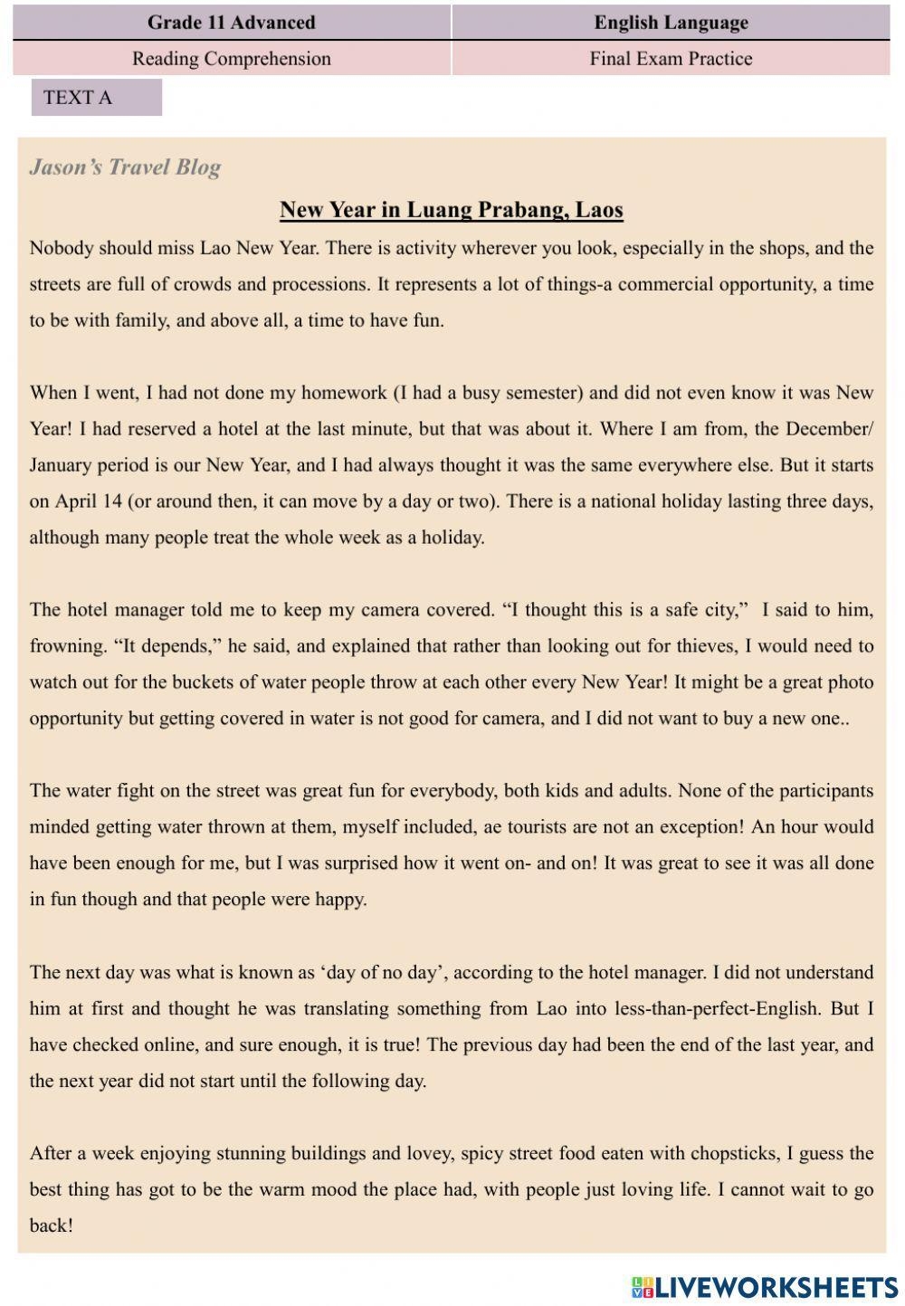 11 Advanced Reading Comprehension1 Worksheet Live Worksheets Worksheets Library
