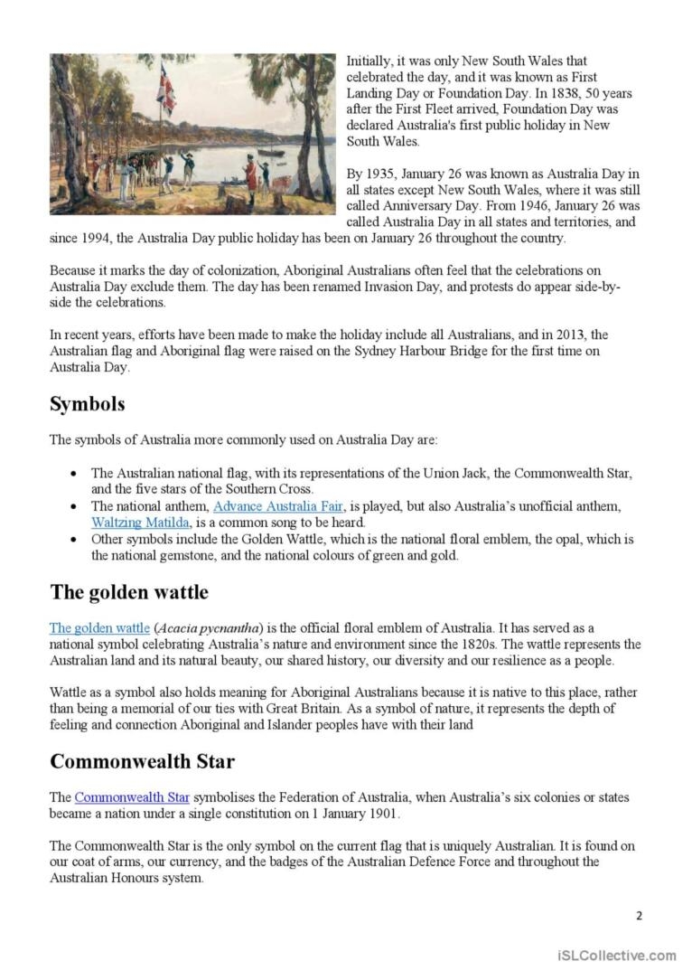 Reading Activity Australia Day Read English ESL Worksheets Pdf Doc