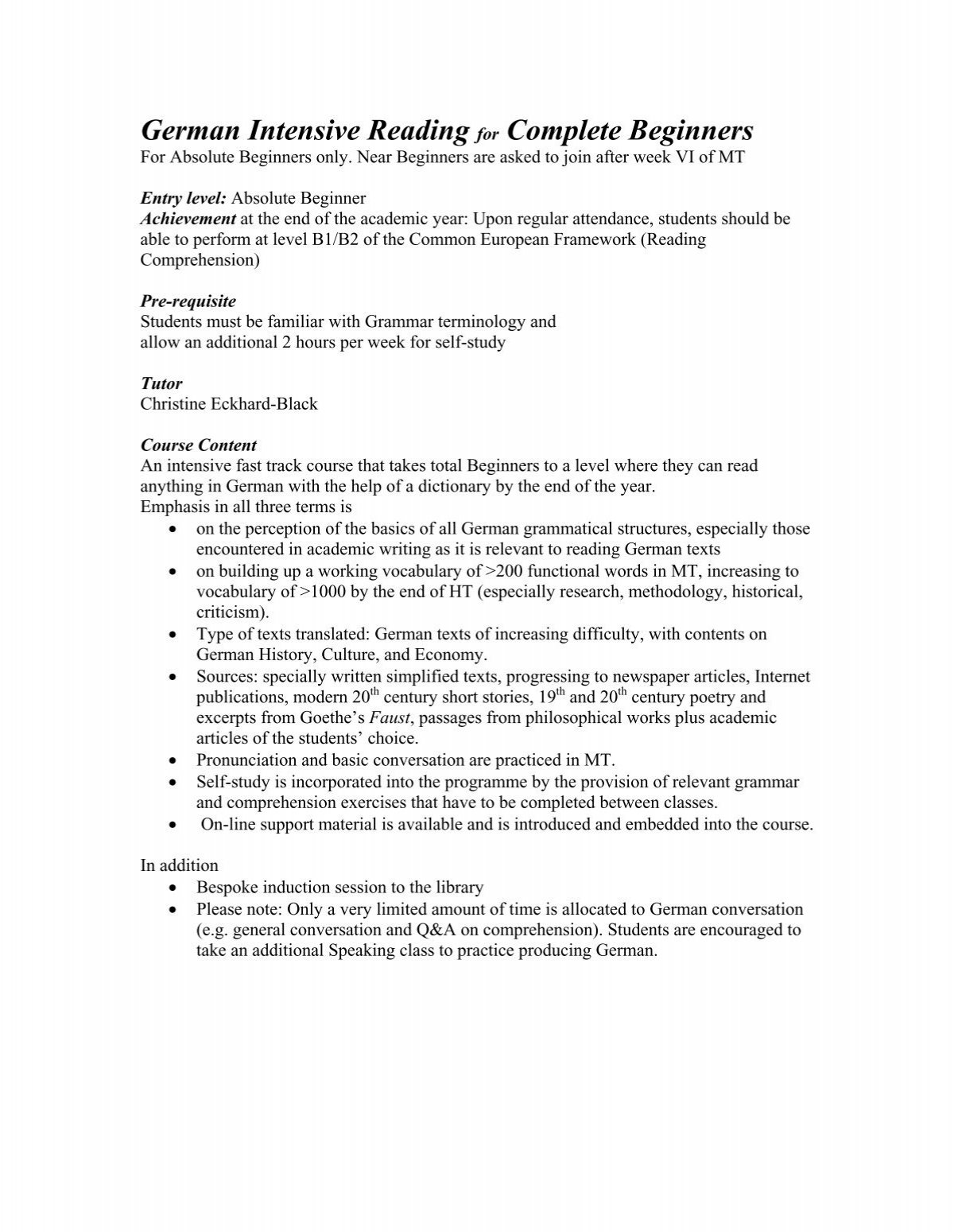 German Intensive Reading For Complete Beginners