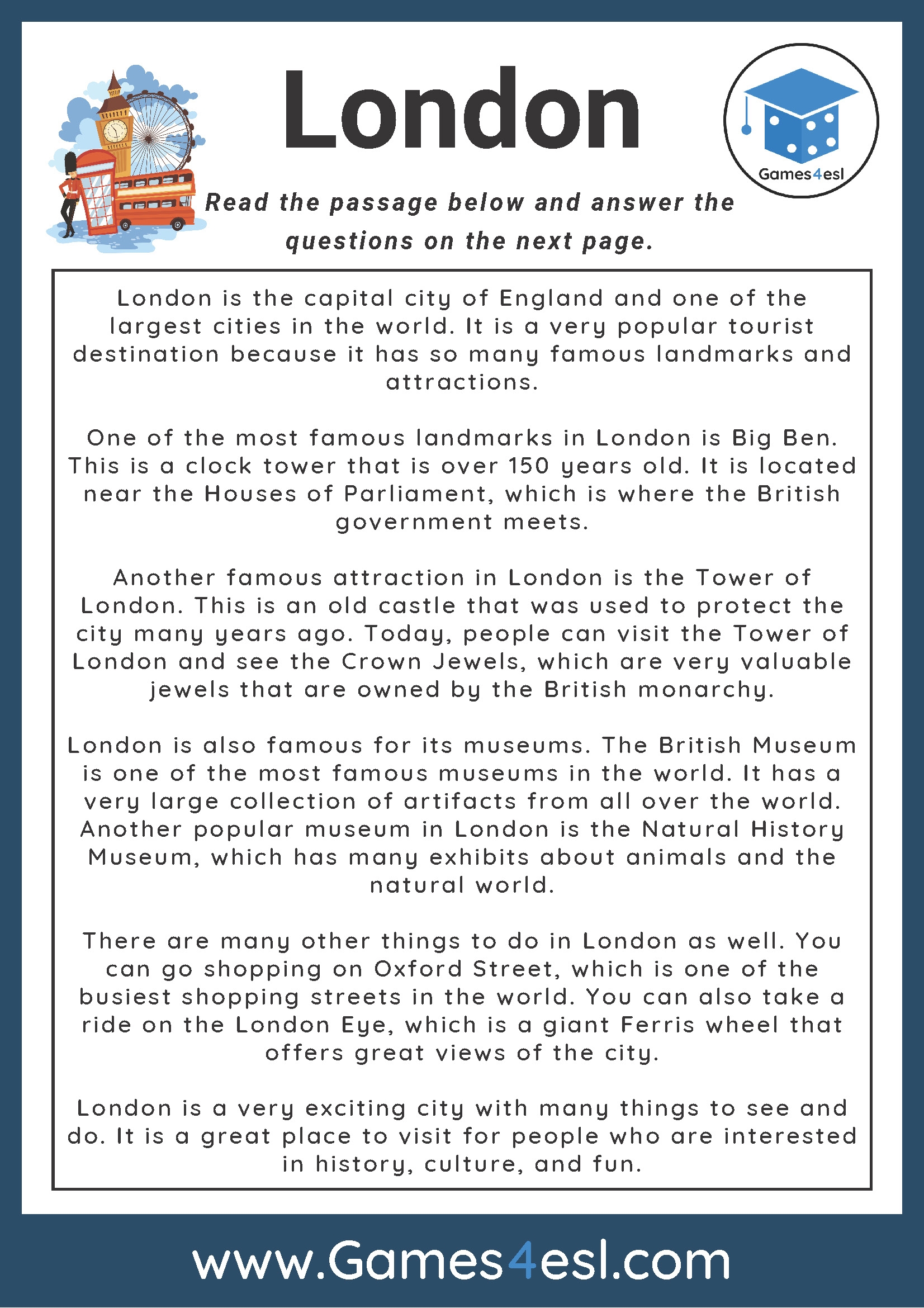 Free Reading Comprehension Worksheets ESL Students